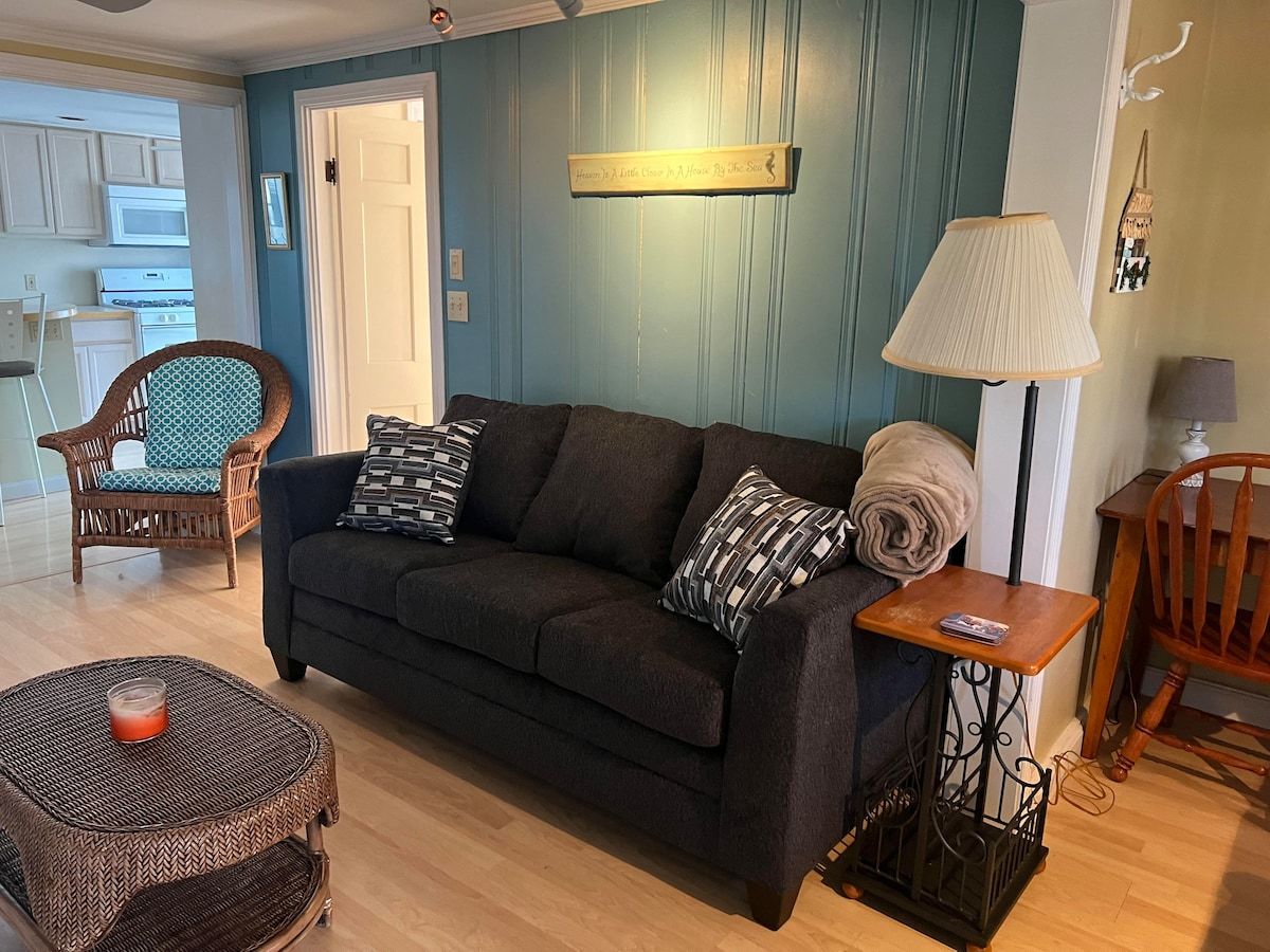 This duplex-style cottage has a queen bed in the bedroom and a twin bed with an additional twin trundle located in the living room. You can comfortably sleep 4 people. There is a 3/4 bath and a washer & dryer in the unit. The cottage is just steps away from the beach and a very easy access to Route 101. The cottage has a large deck and one parking spot.