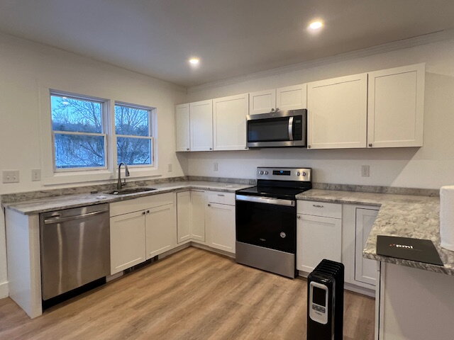 Updated, bright and beautiful with water views. 1 bedroom, 1 bathroom, 1st level is living room, kitchen, deck. Second floor is bedroom, bathroom, small office area space. Enjoy a yard, water access and your feet up on the deck in the sunshine.
